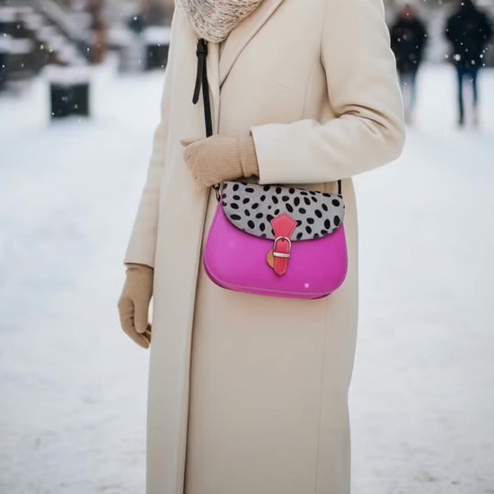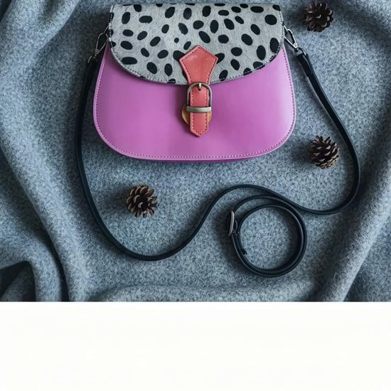 Handmade Leather Crossbody bag - Mira - Pink Heat