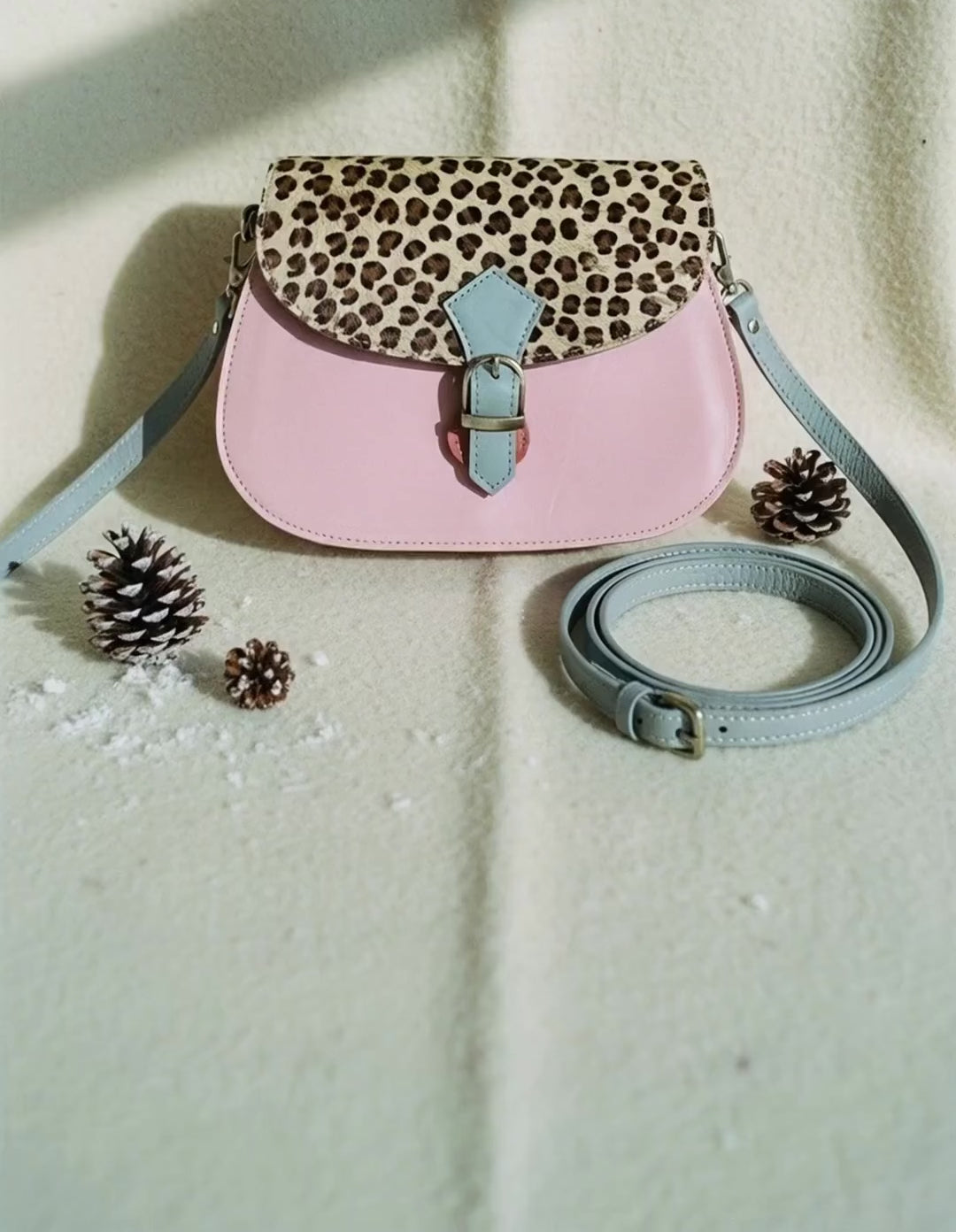 Handmade Leather Crossbody bag - Mira- Wild Rose