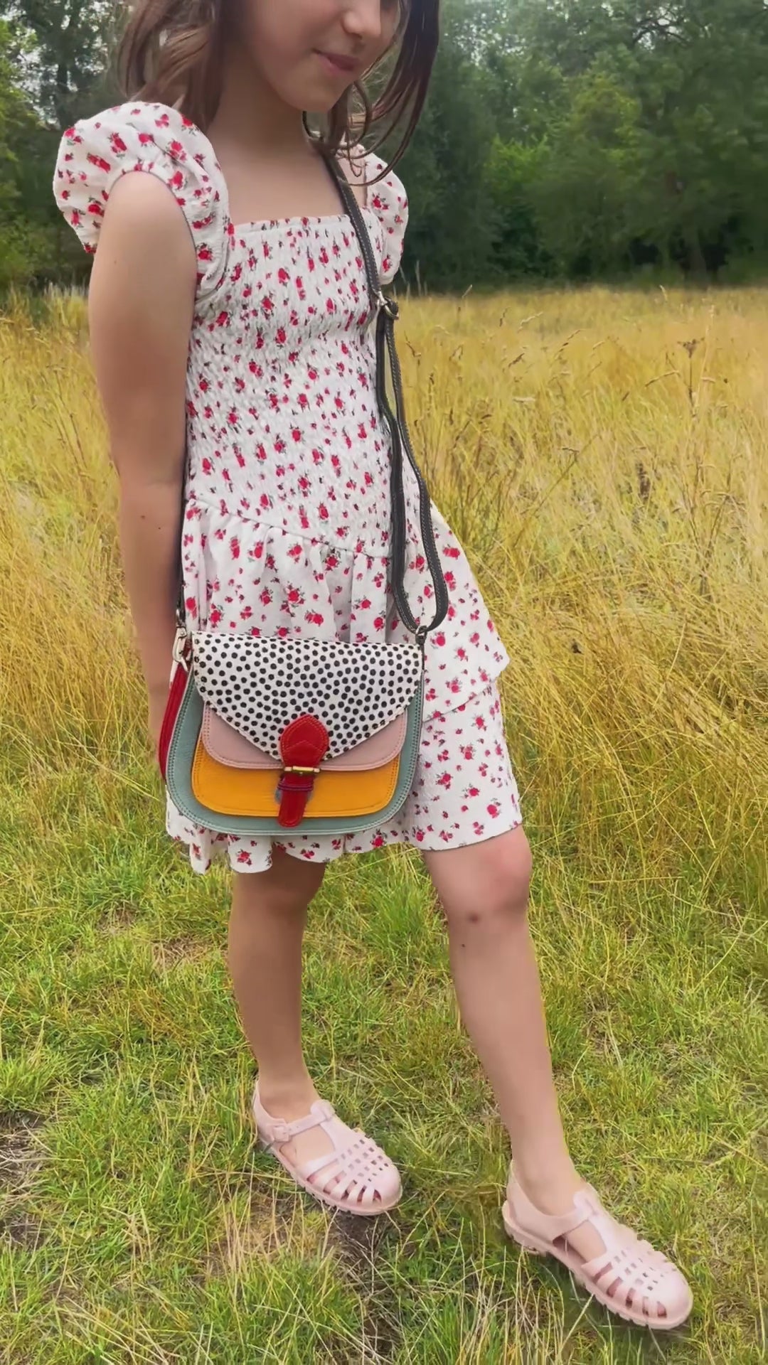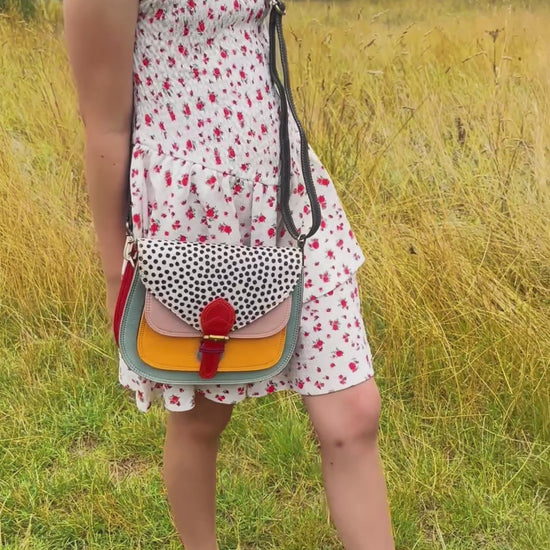Leather Cross Body Bag - Romy -Pastel and Dots